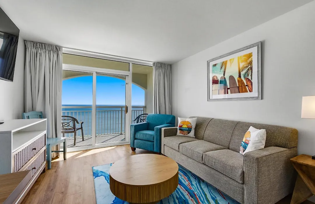 The view of the sea can be admired from this Myrtle Beach accommodation. Bathroom facilities also include a separate toilet and a shower. A hairdryer and bath sheets are included for added comfort.
